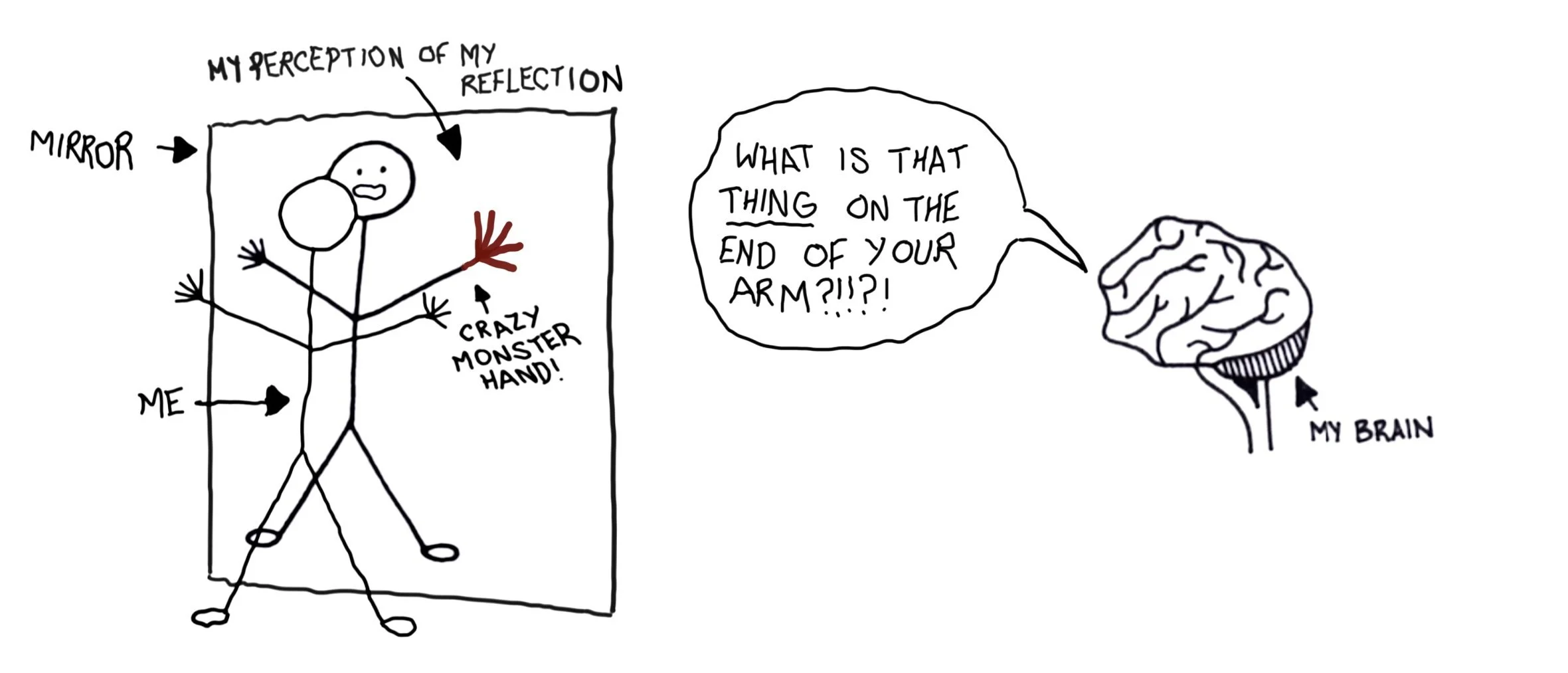 Good question, reader! But have patience, for I’m about to tell you about the strange sorcery that is mirror therapy.